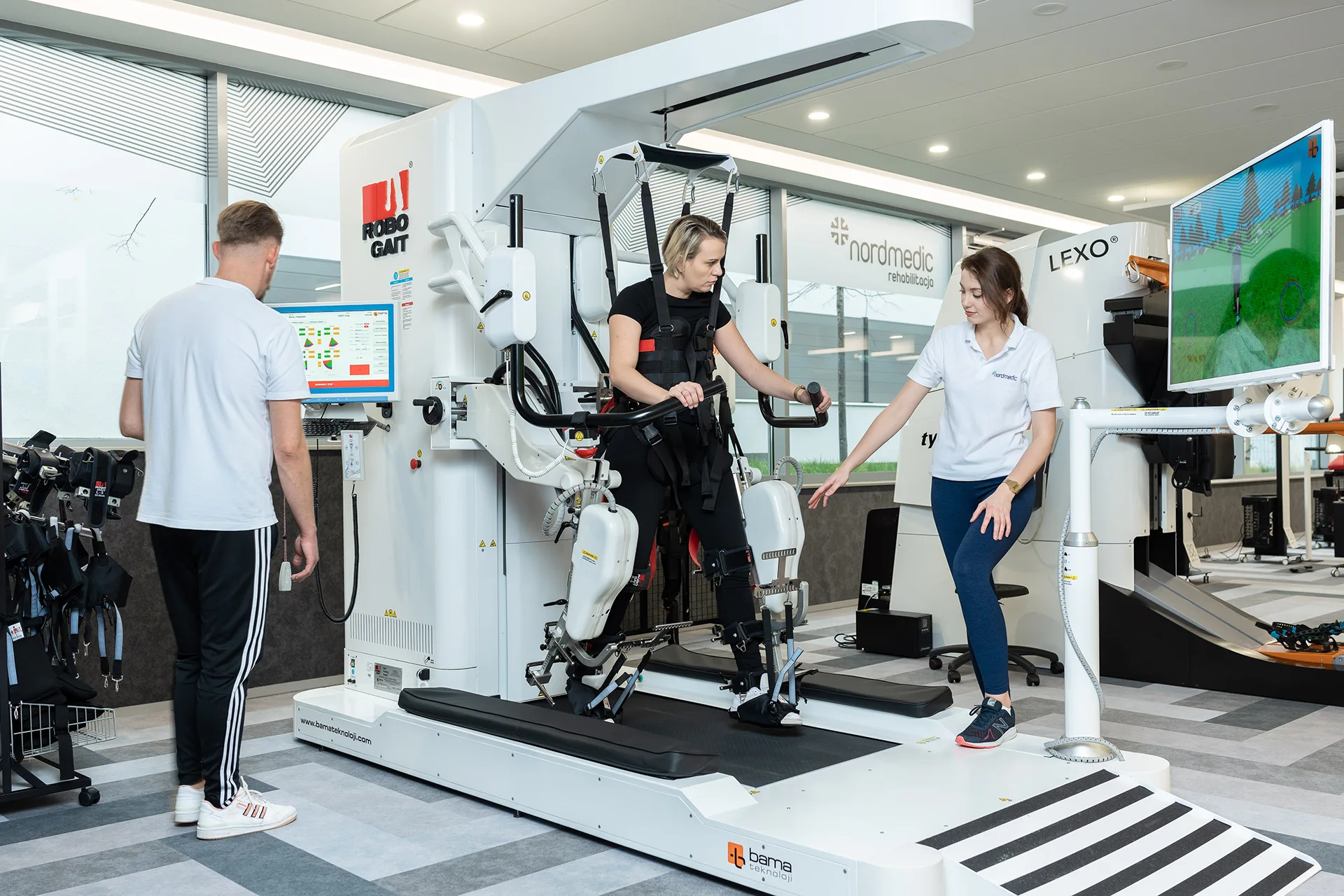 Wspiera terapię, gdy pacjent utraci umiejętność chodu w wyniku urazu mózgu lub rdzenia kręgowego, udaru, schorzeń ortopedycznych czy neurologicznych.